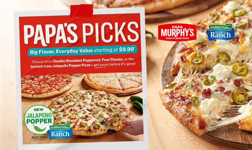 Hidden Valley Ranch is teaming up with Papa Murphy’s — the largest take-and-bake pizza franchise in the U.S. — to bring a bold new Jalapeño Popper Pizza featuring Hidden Valley Ranch to 1,100 locations nationwide for a limited time (Feb. 23-Mar. 22).